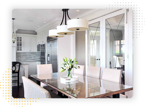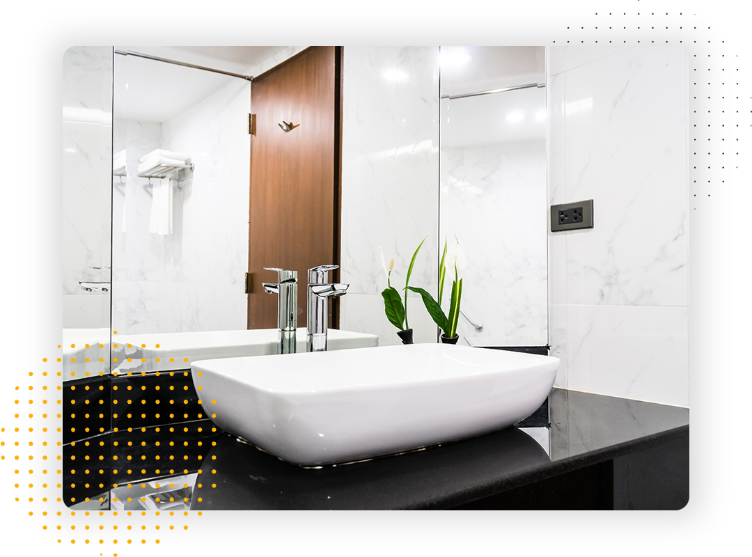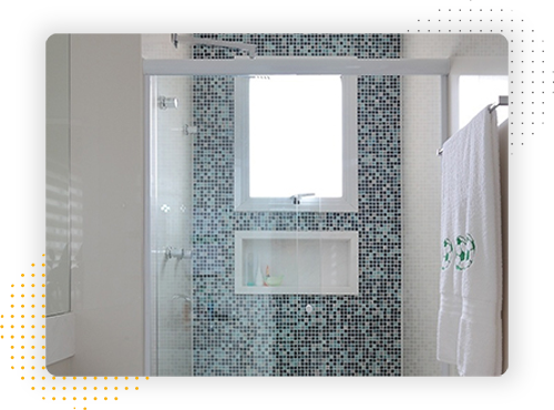 É o modelo decorativo obtido através do efeito chanfrado na borda do espelho, criando uma moldura delicada e única.